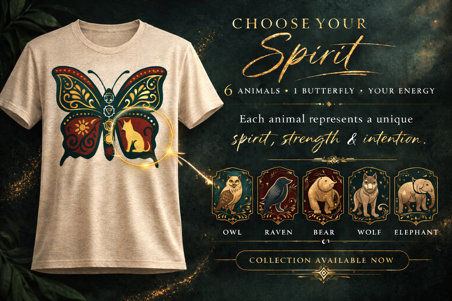 A moonlit collection of soft white silhouettes and delicate cutout patterns, designed to glow against the dark. Each piece evokes quiet magic. Rooted in stillness, these designs speak through transparency, revealing more in shadow than light. Minimalist, soulful, and timeless. The T-shirts are  more than apparel, itâs a wearable connection to your inner compass. Each design features a symbolic animal paired with a hidden decree placed near your heart, for your eyes only.