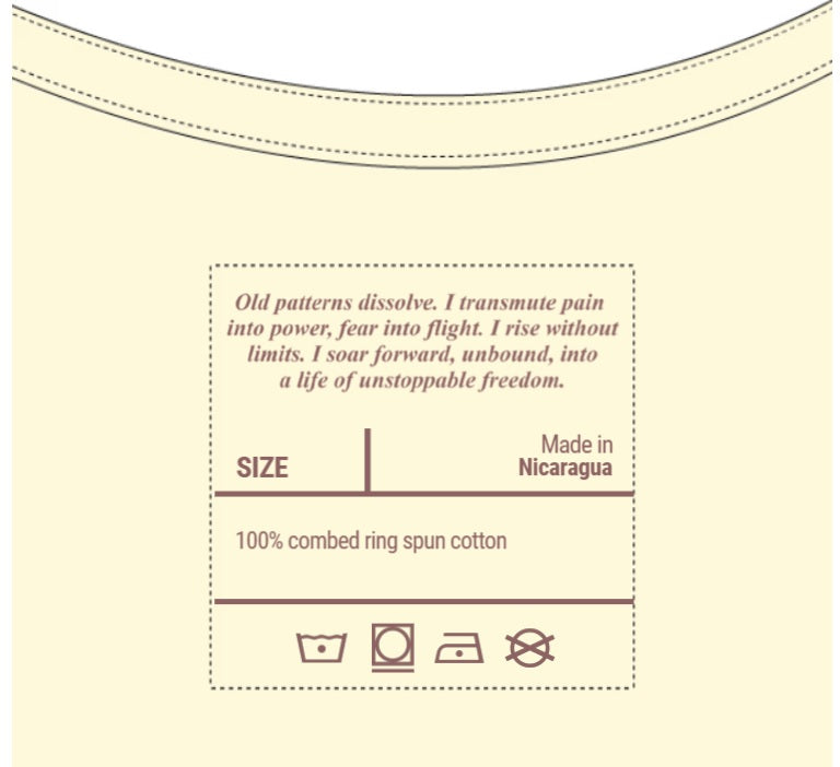 Each shirt in this collection carries a hidden decree printed inside — a message of truth, clarity, or protection meant only for the wearer. Like the designs themselves, the magic is subtle but powerful.